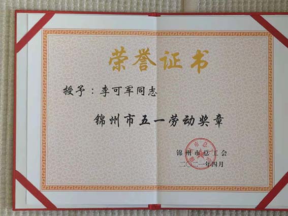 公司董事長(zhǎng)李可軍榮獲“錦州市五一勞動(dòng)獎(jiǎng)?wù)隆睒s譽(yù)稱號(hào)